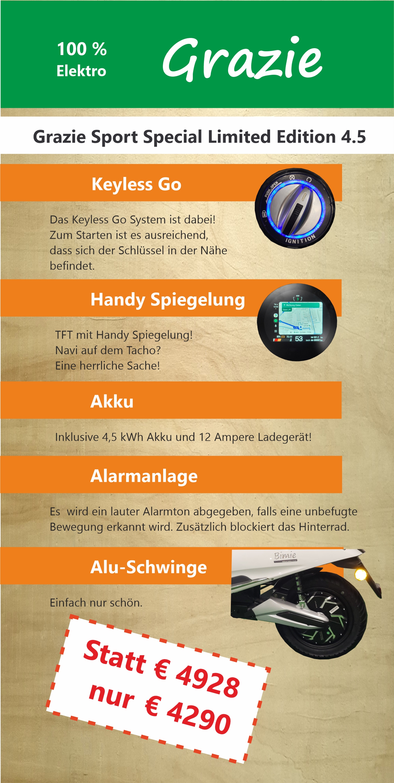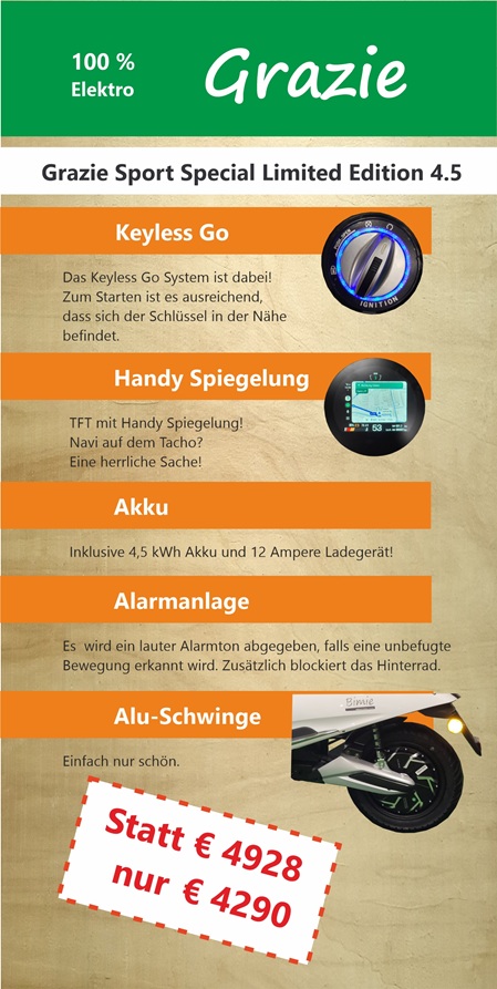 (Bimie Grazie) Ehrliche und kompetente Beratung und innovative aber zugleich leistbare Roller. |