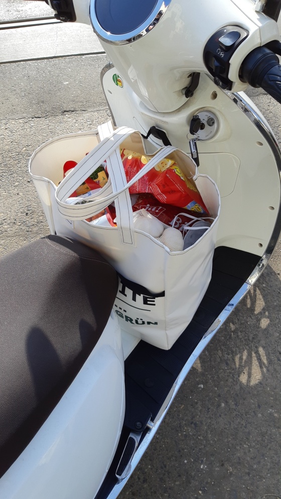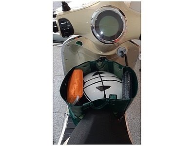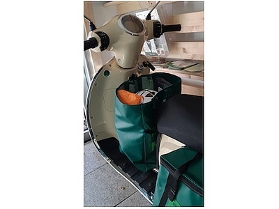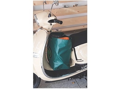 Passt perfekt zwischen Schürze und Sitzbank und wird vorne und hinten befestigt. Für den großen Stauraum beim Einkauf.