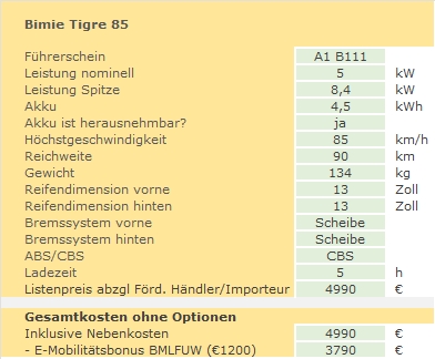 Um die Lesbarkeit der Preisgestaltung transparenter zu gestalten, und da Bikemite diese Förderung in jedem Fall gewährt, haben wir unter "Listenpreis (1)" diesen Betrag bereits abgezogen. Der tatsächliche Listenpreis ist um diesen Betrag erhöht, hier aber nicht angeführt.