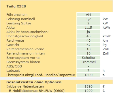 Damit der Käufer diese Förderung durch die Umweltförderung in Anspruch nehmen kann, gewährt der Händler / Importeur (Bikemite) ebenso eine weitere Förderung in der Höhe von €350 (L1e) bzw €500 (L3e) netto.